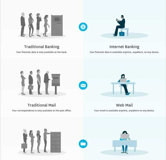 上圖中的云計算指南使用了平面圖形和圖解的組合來展示在工作中使用云的各種優(yōu)勢。圖像的簡單性使得用戶可以輕松理解信息。