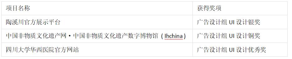2020年9月8日,第20屆IAI國(guó)際廣告獎(jiǎng)新鮮出爐。在備受關(guān)注的廣告設(shè)計(jì)組UI設(shè)計(jì)獎(jiǎng)中,由分形科技設(shè)計(jì)的陶溪川官方展示平臺(tái)、中國(guó)非物質(zhì)文化遺產(chǎn)網(wǎng)·中國(guó)非物質(zhì)文化遺產(chǎn)數(shù)字博物館(Ihchina)、四川大學(xué)華西醫(yī)院官方網(wǎng)站,3個(gè)UI設(shè)計(jì)作品在一眾候選名單中“脫穎而出”,分別獲得廣告設(shè)計(jì)組UI設(shè)計(jì)銀獎(jiǎng)、廣告設(shè)計(jì)組UI設(shè)計(jì)銅獎(jiǎng)、廣告設(shè)計(jì)組UI設(shè)計(jì)優(yōu)秀獎(jiǎng)。
