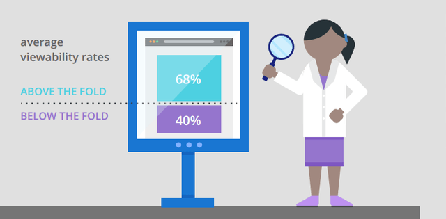 剛剛有提到,廣告放置于使用者剛進入網(wǎng)站無需卷動就能看到的顯眼區(qū)域(Above the fold) 最容易被看見,但放在需下拉網(wǎng)頁才能看到的區(qū)域(Below the fold) 就看不到嗎?研究指出,還是有機會被看到的,但機率相較于顯眼區(qū)域低,分別是68% 比40%。
